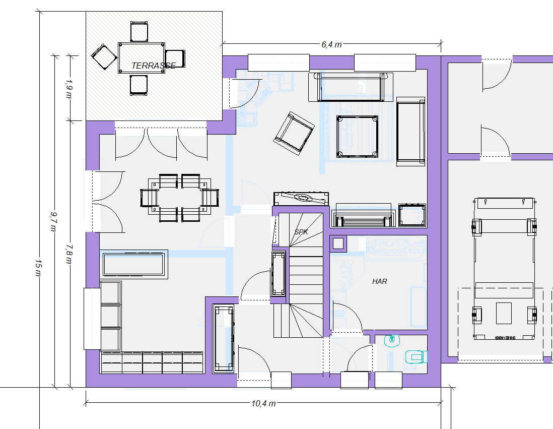 Verlassen wir mal das Rechteck und schauen, was es noch so gibt. Das Walmdach wird eh teuer, wenn wir noch ne Ecke rein machen, wird das das Kraut nicht fett machen: