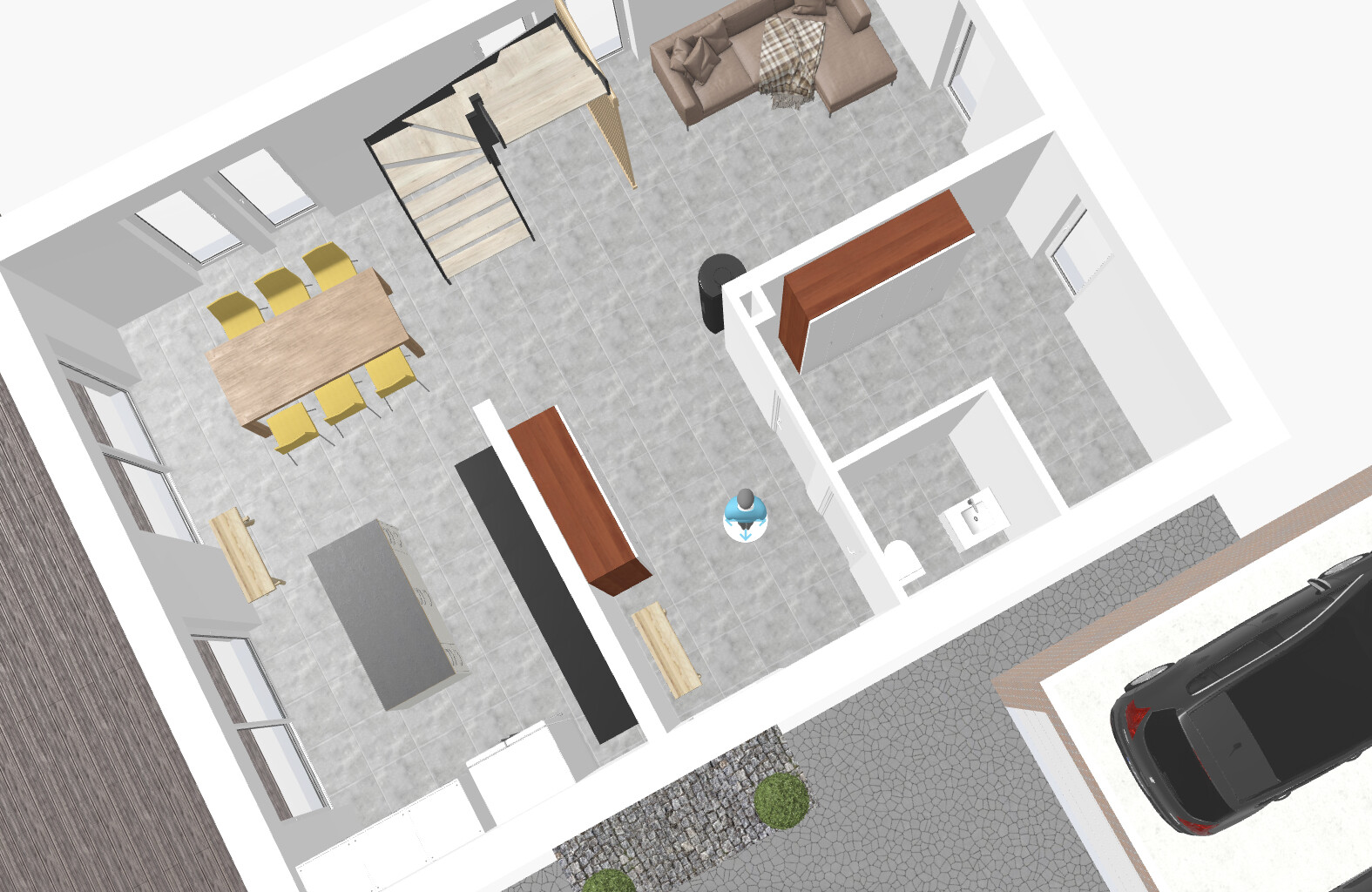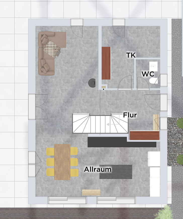 Ich probiere mich gerade mit dieser Treppenlage. Deine Zeichnung funktioniert so minimalistisch nicht so gut, weil Du über den Fokus der Küche Garderobe etc vergisst 😉