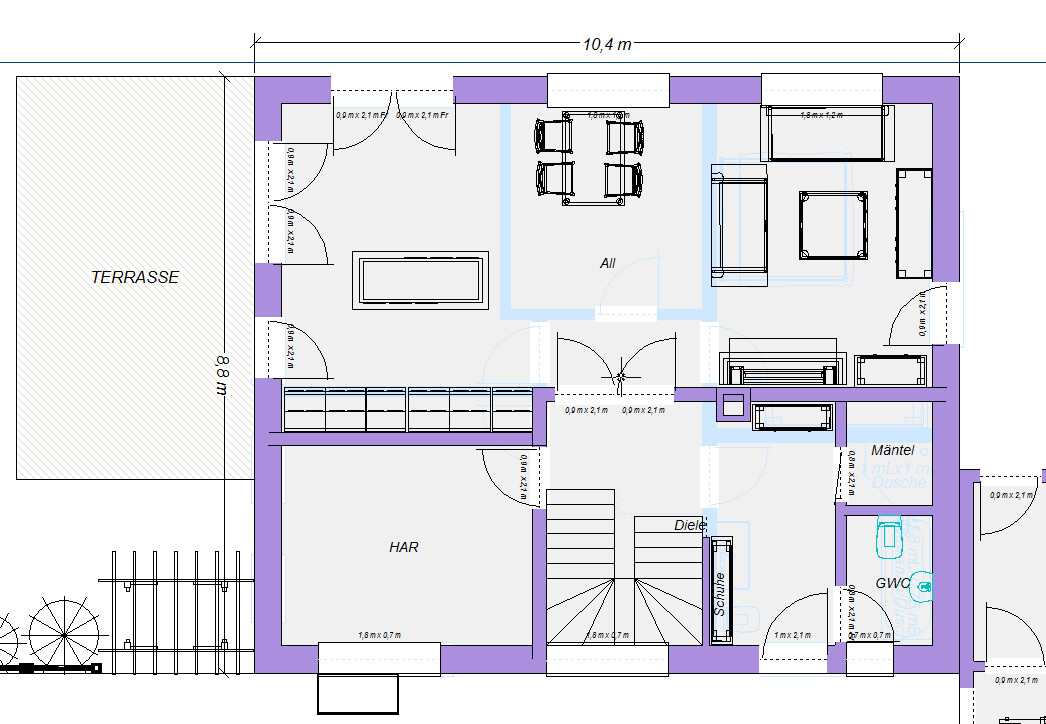 Ein passender Standardgrundriss könnte vielleicht etwa so aussehen, ähnliche Varianten waren ja auch schon von Yvonne dabei:
