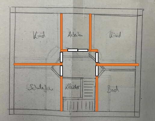 Aber ich freue mich das ich schon was von euch umsetzen konnte.Ich würde den Schlafzimmer-Stummel weglassen. Er unterbricht eine potenzielle Schrank-/Bett-Wand und sorgt dafür, dass der Flur oben finster wird. ypg 09.03.23 14:30