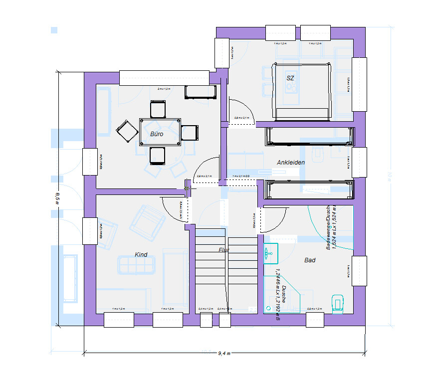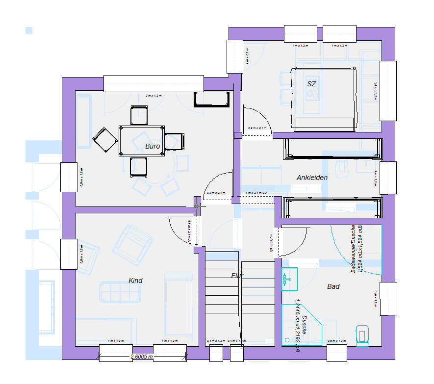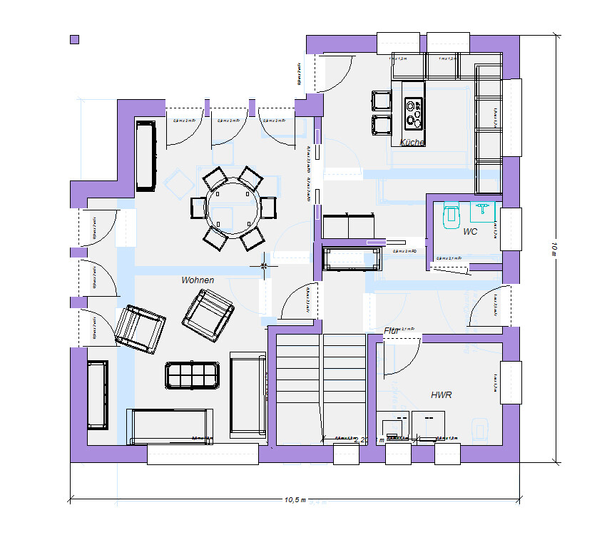 Da mache ich mich mal dran (wenn nur die Arbeit nicht wäre und man mehr Zeit hätte). Aber wenn ich es wie oben sehe, das Technikraum, Treppe und Wohnzimmer nebeneinander sind, dann bleibt für das Wohnzimmer denke ich zu wenig Breite. 4m sollten das denke ich schon mindestens sein.