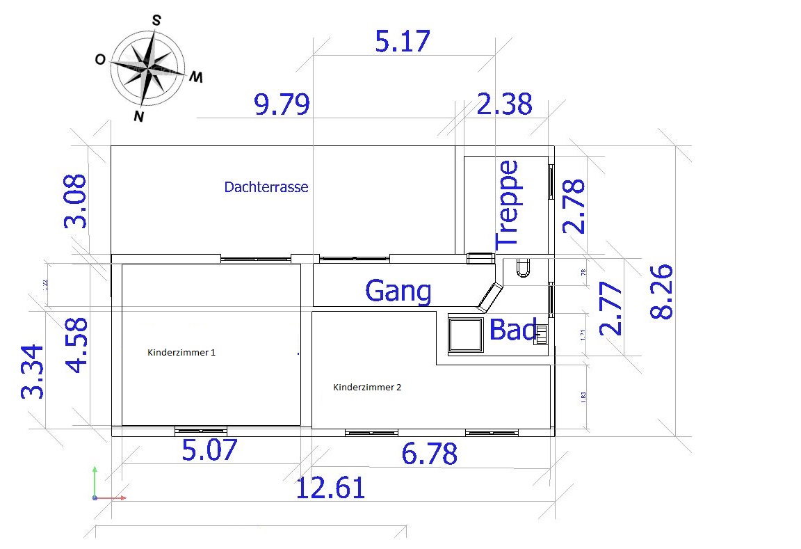 Dort oben haben wir ein 3. Bad eingeplant da dort oben die Kinder hoch möchten und so eine Möglichkeit haben zu Duschen bzw. mal schnell aufs Klo zu gehen.