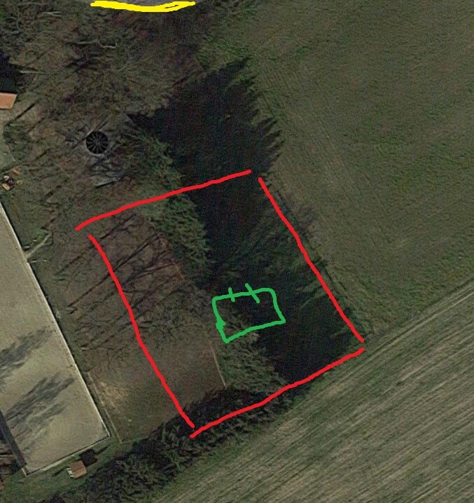 Im Roten Kasten müssen wir landen, aktuell wollen wir quasi WE1 Richtung Hof, WE2 Richtung offenes Feld planen mit beiden Eingangstüren Richtung Straße, die noch einige Meter weg ist dann.