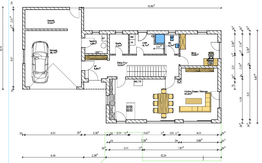 ich habe jetzt länger nichts mehr gepostet. Derzeit befinde ich mich in der Planungsphase und möchte euch nun meinen Grundriss vorstellen.