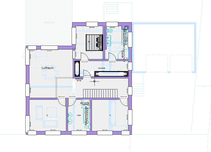 In diesem Fall mag es Dein Luftraum mit Pflanze sein: Pflanze wurde eingezeichnet, aber der Luftraum selbst ist nirgendwo eingezeichnet. Warum nicht? Kann es sein, dass im OG ein Slalomweg entsteht, um um die Pflanze, also um einen verwinkelten Luftraum herum gehen zu müssen?????