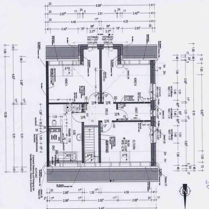 Ich stelle nur fest .. wieder keine Möblierung eingetragen und sehe noch dieselben Schwachstellen bezüglich Küchenplanung, aber auch bezüglich Elternschlafzimmer ... hast du das mal möbliert? Schrank gestellt z. B. wg. Fenster? Fenster fürs Bad kann ich auch nicht erkennen.