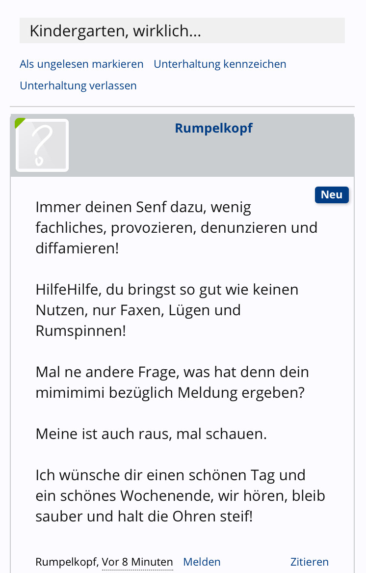 Ich unterlasse es, deine Nachrichten an mich jetzt hier öffentlich zu machen, aber das kann es ja echt nicht mehr sein.