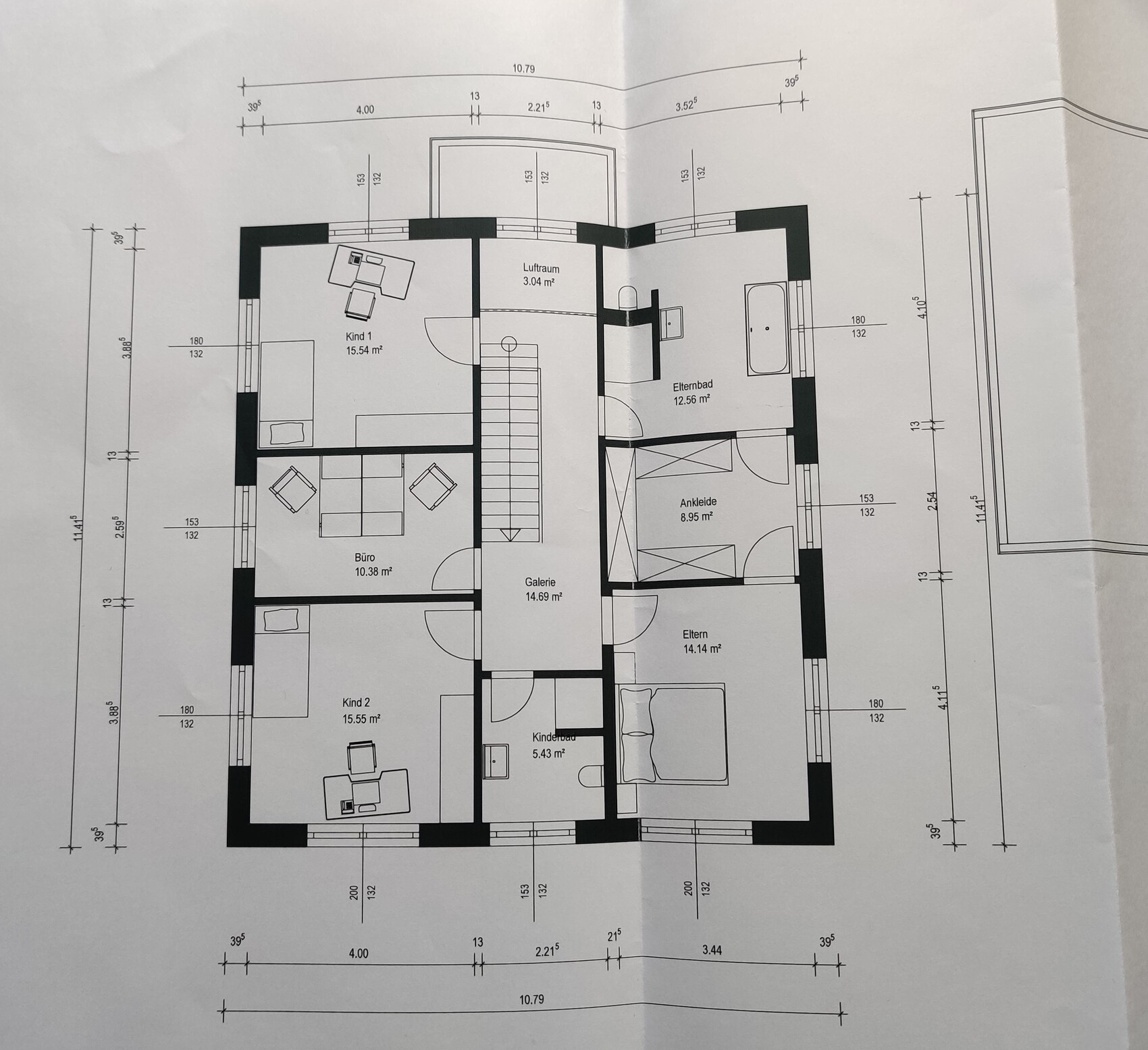 Vorschlag: Luftraum raus, Eltern und Kind 1 tauschen und den Norden als Elterntrakt nutzen