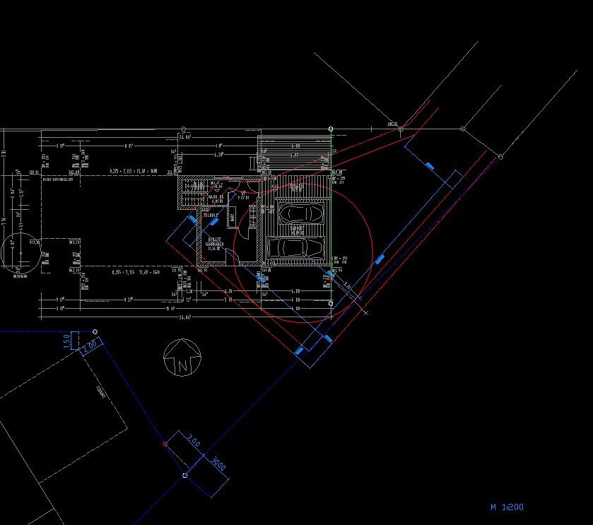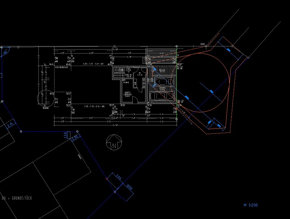CAD-Grundriss und Grundstückslageplan mit Gebäudestruktur