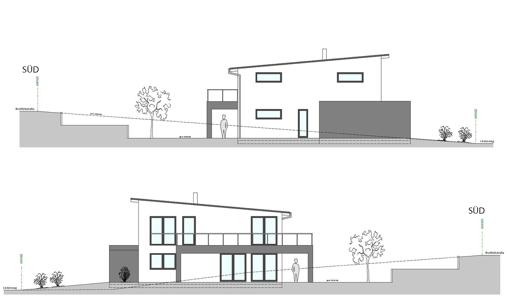 wir bauen unser Haus auf einem Grundstück mit Hanglage zum Haus (höchste Stelle ist die Südseite).