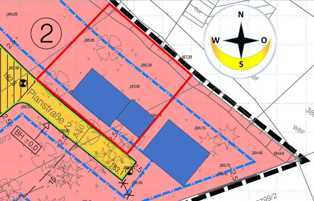 Nachbarbebauung = rechts ist bereits bebaut. Sehr nah mit 2,5 m Abstand.,Dann sollte man ggf. mal ansetzen, wo die Ihre Höhen haben.Bau_Rookie schrieb: