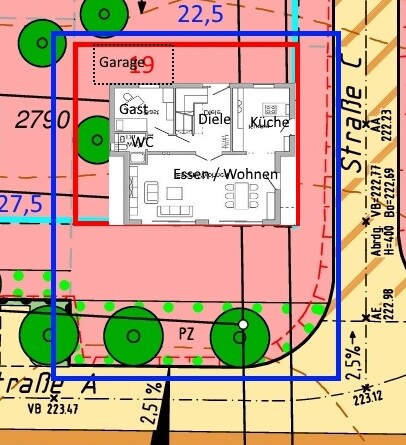 ᐅ Grundstück - Baufenster - Lage von Haus und Garage