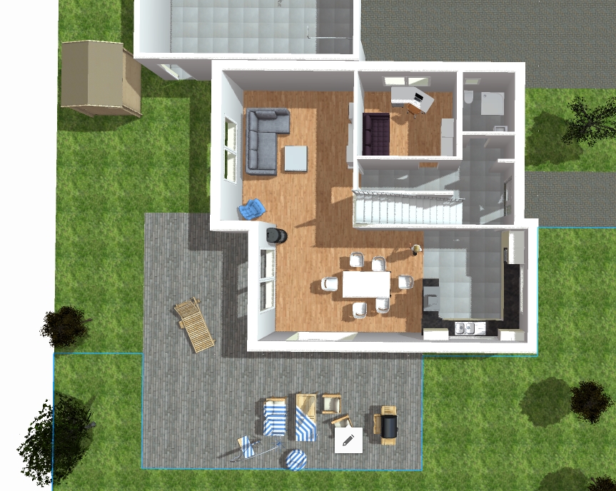 Einen Keller soll es auch geben, der über die Diele erreicht werden kann. Ich habe das alles selbst skizziert mit HomeByMe, um mir mal einen ersten Eindruck zu verschaffen.