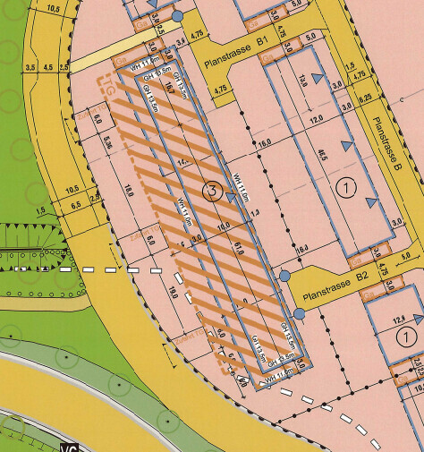 ich finde gerade den Bebauungsplan nicht mehr, aber erkennt man das nicht an den geplanten Grundstücksbreiten?