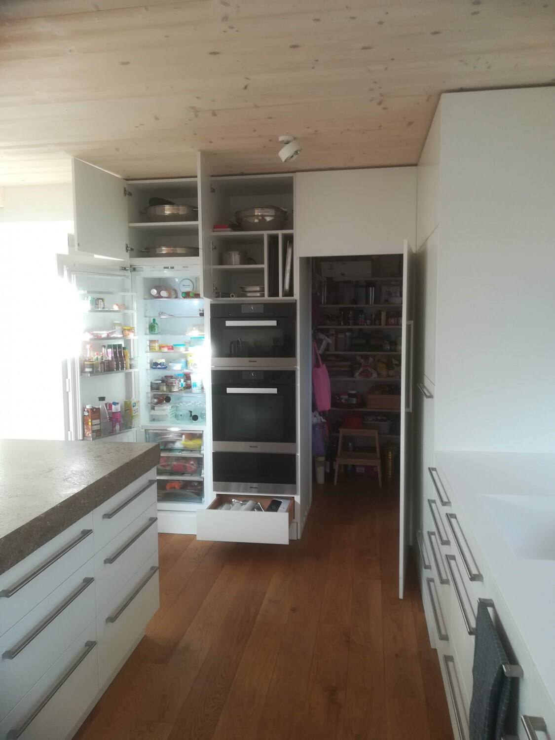 Ansonsten kann man die Speiskammer natürlich auch entfernen und die Küche selbst vergrößern. Ich vermute allerdings mal es wäre kostengünstiger, wenn wir keine extra Küchenfronten/Hochschränke bräuchten.