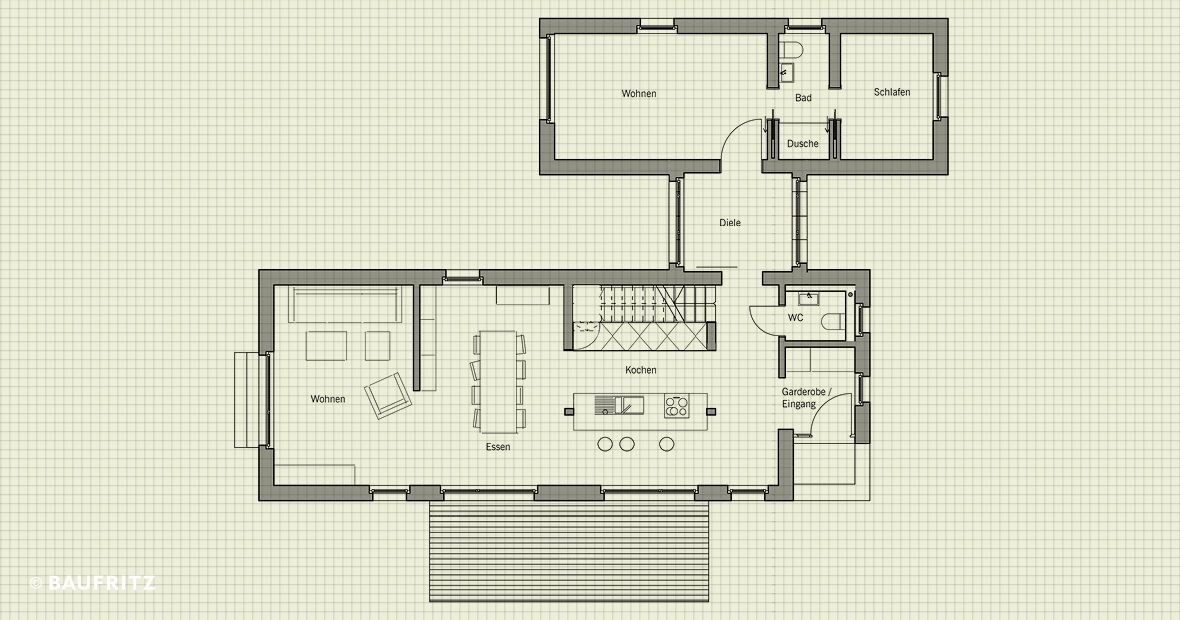 Ich hänge mal noch einen der Ideengeber-Grundrisse und Plan mit der Küche zur Fensterfront an.