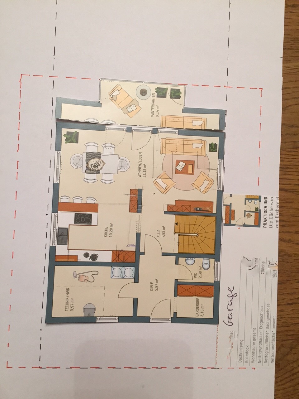 Nach den Skizzen gings dann an eine Bauvoranfrage an die Stadt und ich darf nun auch über die Baulinien in den Norden / Osten Bauen. Somit ergibt sich für mich eine bessere Fläche in Richtung süden und westen.