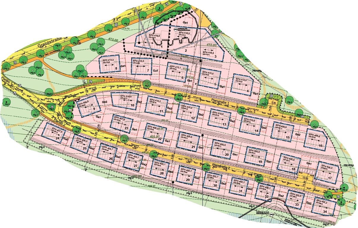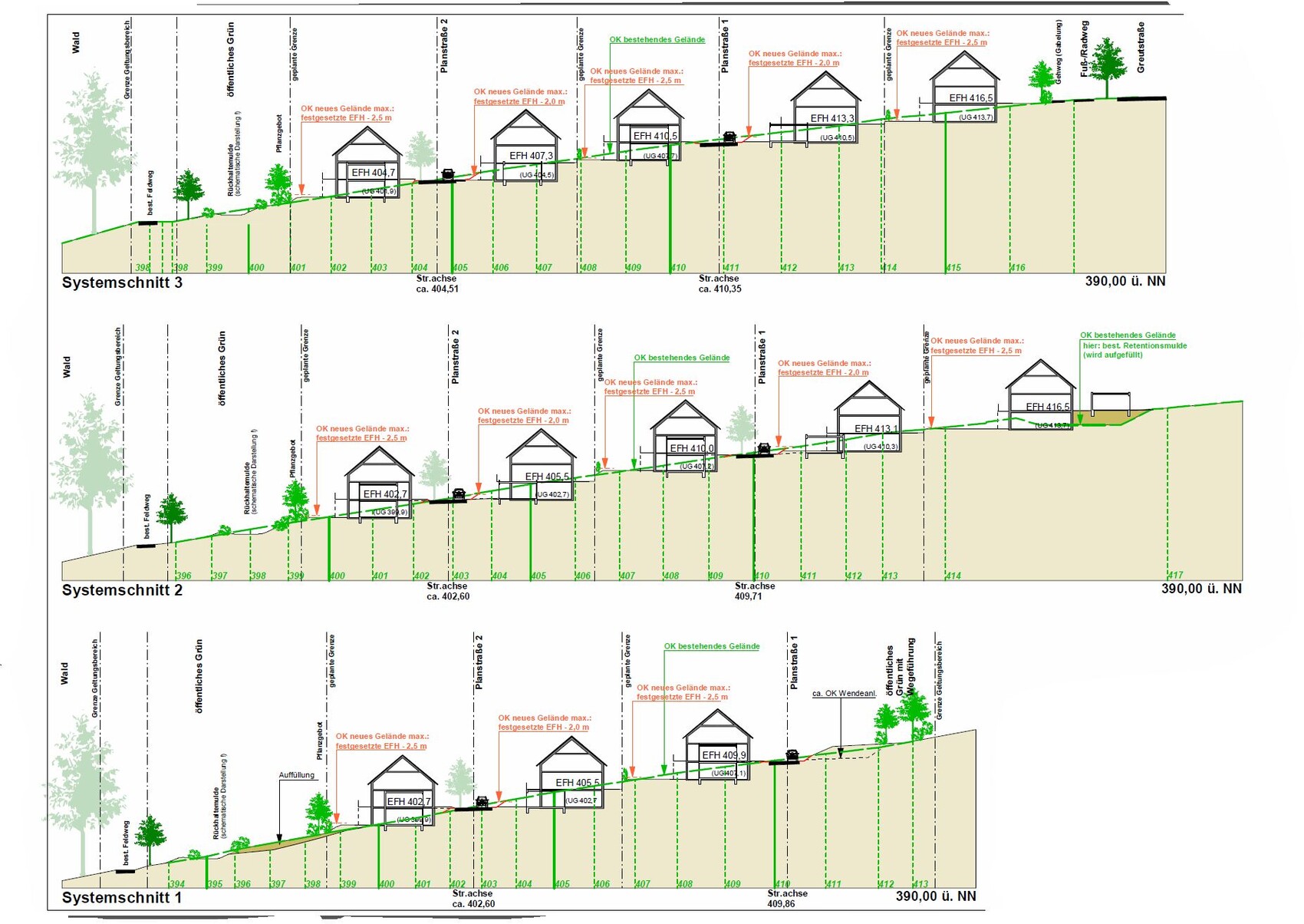 DAnke für Eure Antworten. Also, wir haben uns das mal aufgezeichnet und ausgemessen und sind zu dem Entschluss gekommen, dass uns knapp 430m² reichen. Inzwischen habe ich auch den Schnitt der Stadt erhalten, wo man das Grundstück und die Höhenunterschiede erkennen kann.
