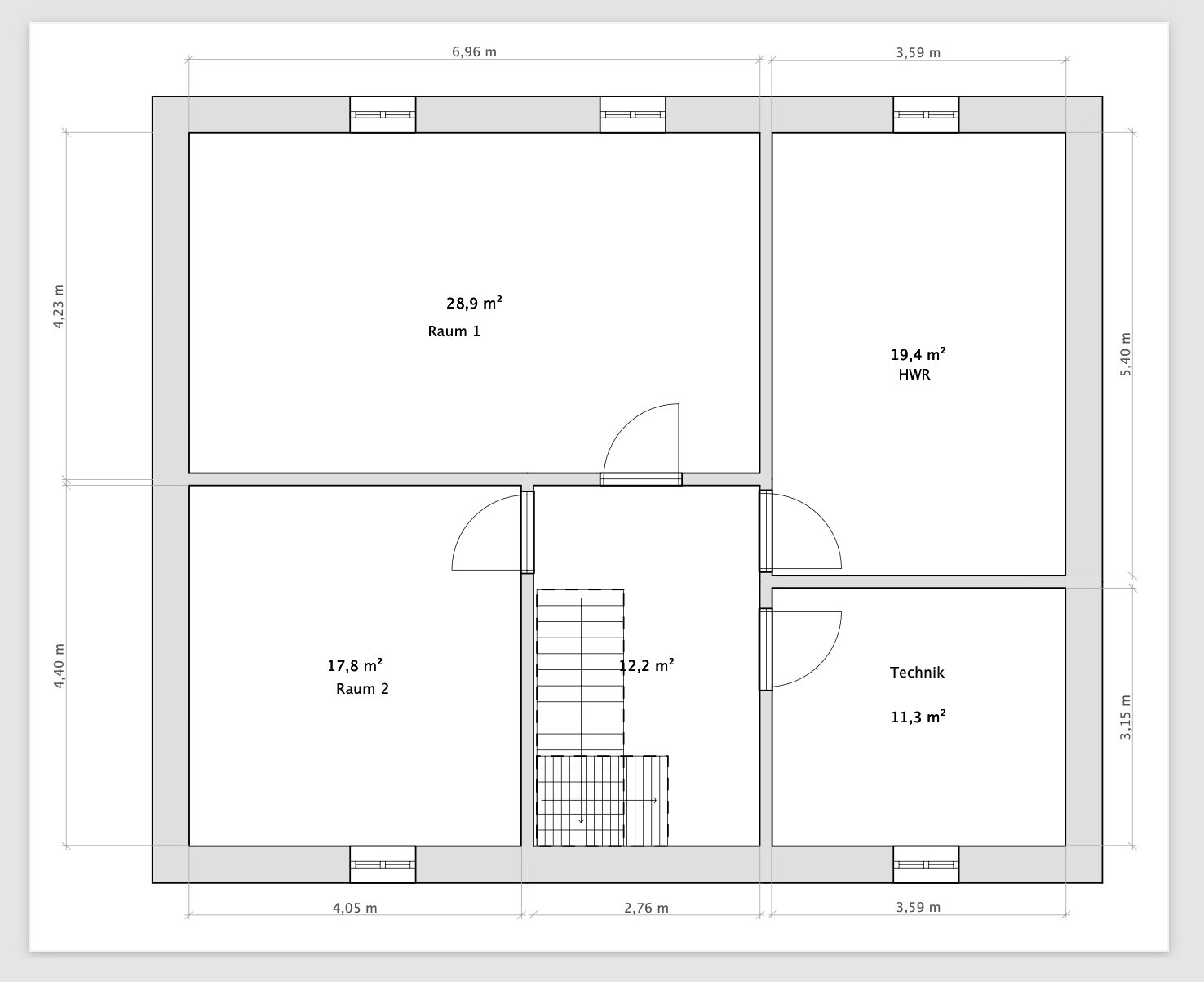 - Fenster sind im Plan alles andere als final - bisher mehr oder weniger Platzhalter, ohne exakte Maße zu kennen - ergo auch noch unpassende Abstände zueinander etc