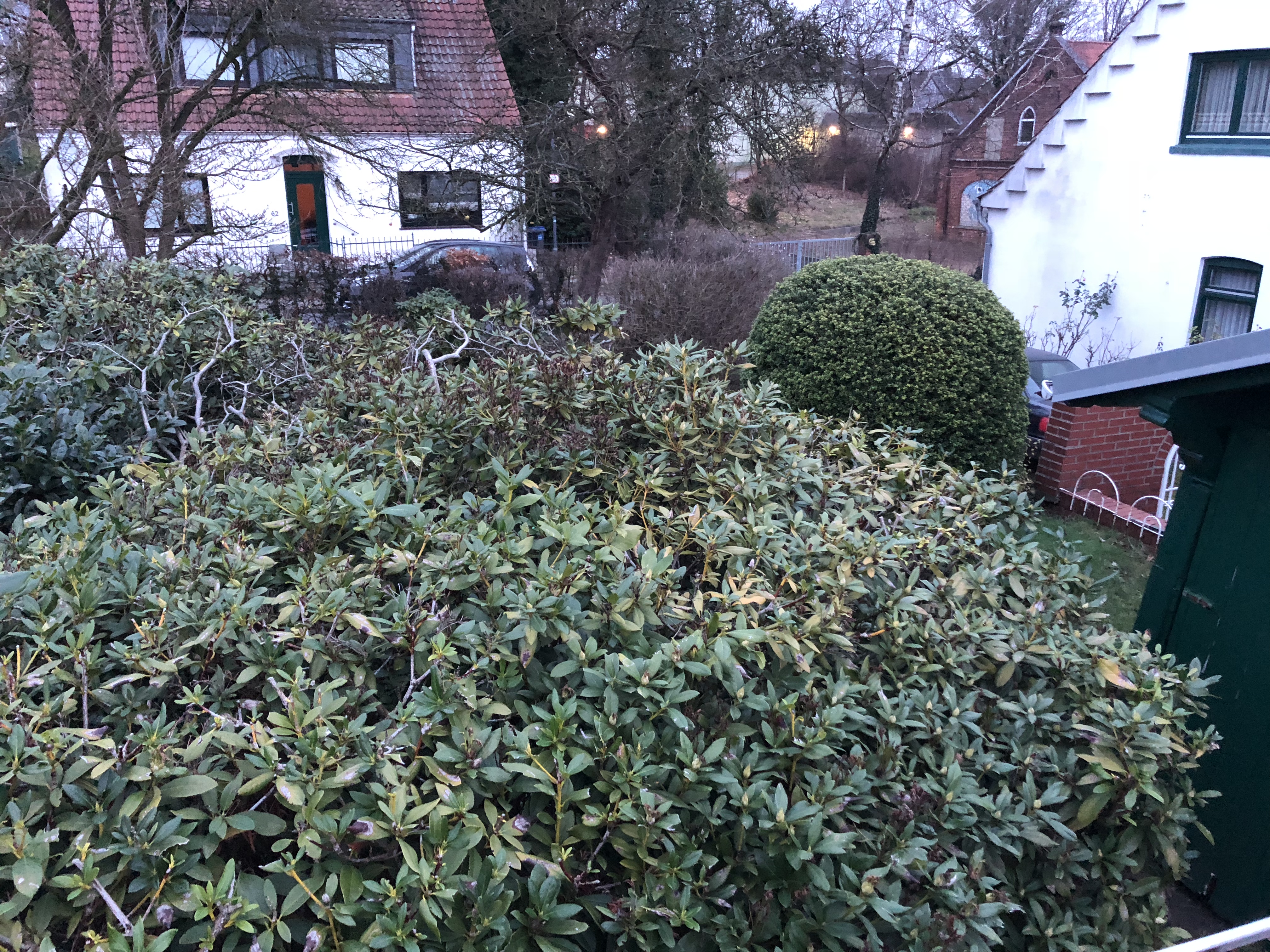 Ich hab mir das gerade mal in Google Maps angeschaut, und am Haus im Osten ist ja quasi eine Etage Versatz umgesetzt (durch die diversen Anbauten kann es auch etwas weniger sein).Hab mal ein Bild gemacht, bevor es dunkel wird.
