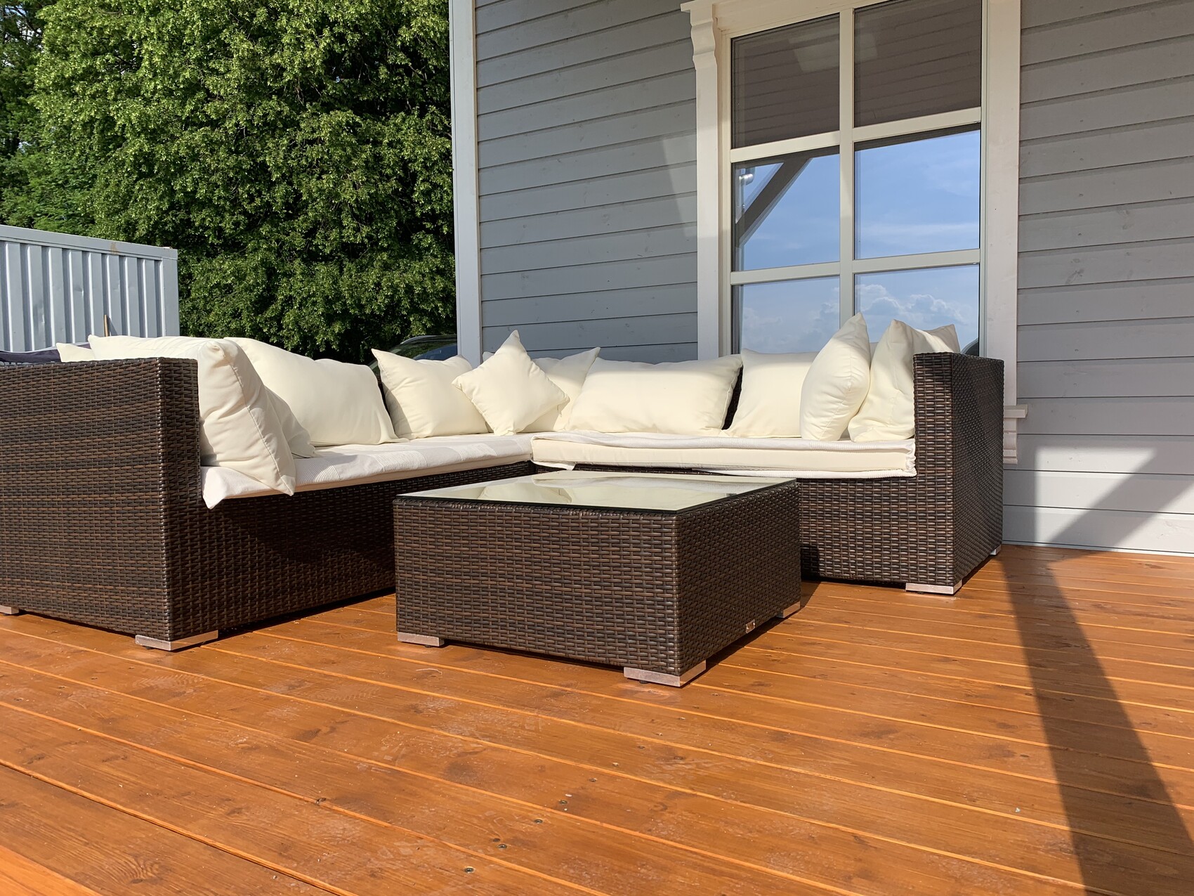 Materialkosten hatten wir für die Terrasse (Sägewerk, Farbe, Schrauben, Zement, und was man sonst noch braucht) bei ca. 1000 Euro. Wobei diese Terrassenbeize ca. die Hälfte der kosten ausgemacht hat.