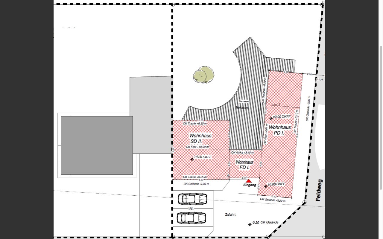 Vermesser möchte nun das Baugrundstück nochmals vermessen (hat bei der Teilungsvermessung wohl keine Höhenangaben vermessen) und einen Lageplan mit dem geplanten Haus erstellen. Diesen dann nochmals vorlegen. Seiner Ansicht nach die einzige verbleibende Möglichkeit.