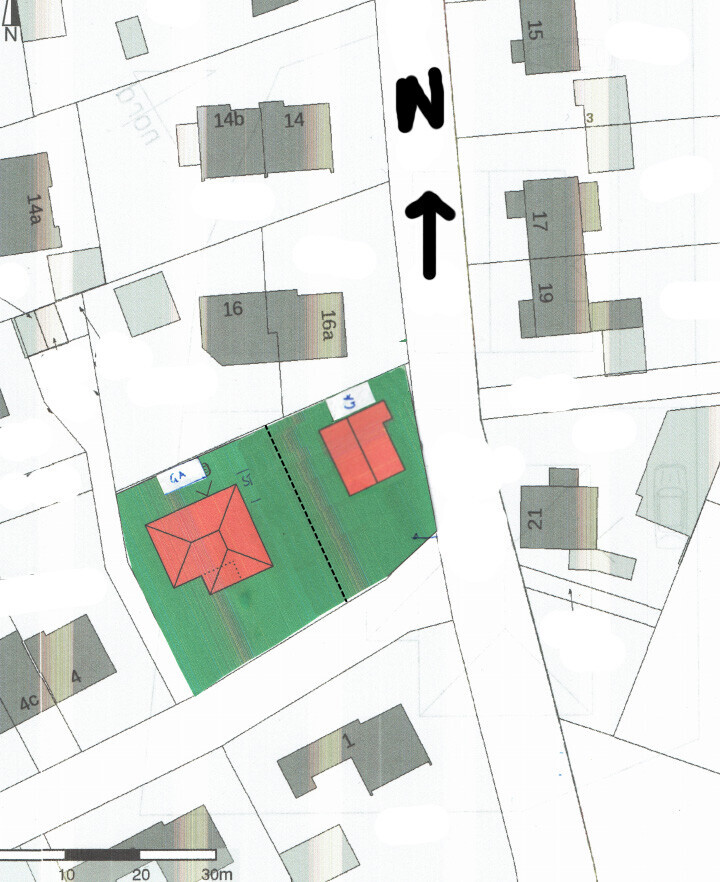 Ich versetze mich mal in den Nachbarn planlinks:Wenn der nicht so auf jeden Euro schauen muss, ist er vielleicht froh, mehr Grundstück für seinen Winkelbungalow zu bekommen - natürlich nicht die Fläche aus #1. Daher habe ich in #19 die gemeinsame Grenze um 3m versetzt, was dann in etwa der Fläche für die Zufahrt entspricht.Fyddles schrieb: