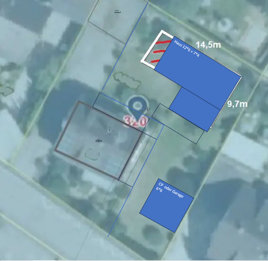 Noch eine Frage: Wäre es mir erlaubt, die Grundstücksgrenze rechts des alten Hauses etwas nach links zu versetzen, damit ich auf meinem „neuen“ Grundstück einen etwas größeren Garten habe?hanghaus202308.07.24 13:46