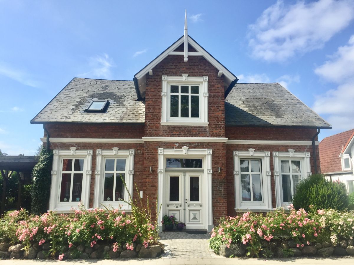 Hier mal ein echtes altes Kapitänshaus, welches in Wyk auf Föhr steht und wohl einem Walfangkapitän gehörte, der mit seiner Waljagd wohlhabend geworden war. Was auffällt, viele Fenster, gross dazu, für die damalige Zeit ein sehr helles Gebäude. Die Farbgestaltung und die Proportionen sind stimmig. Bis heute wirkt das Haus elegant, ohne zu protzen.