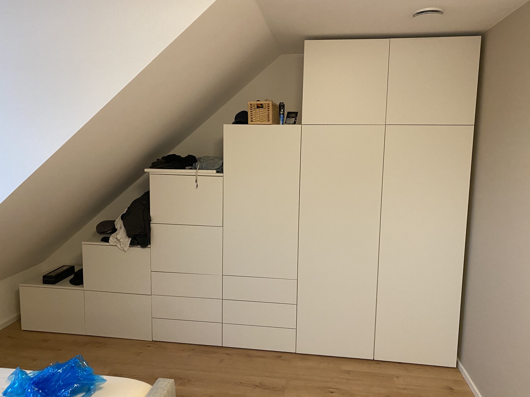Wir haben auch Platsa genommen - deutlich günstiger als Einbauschränke. Allerdings fehlt noch das Einstellen der Türen.