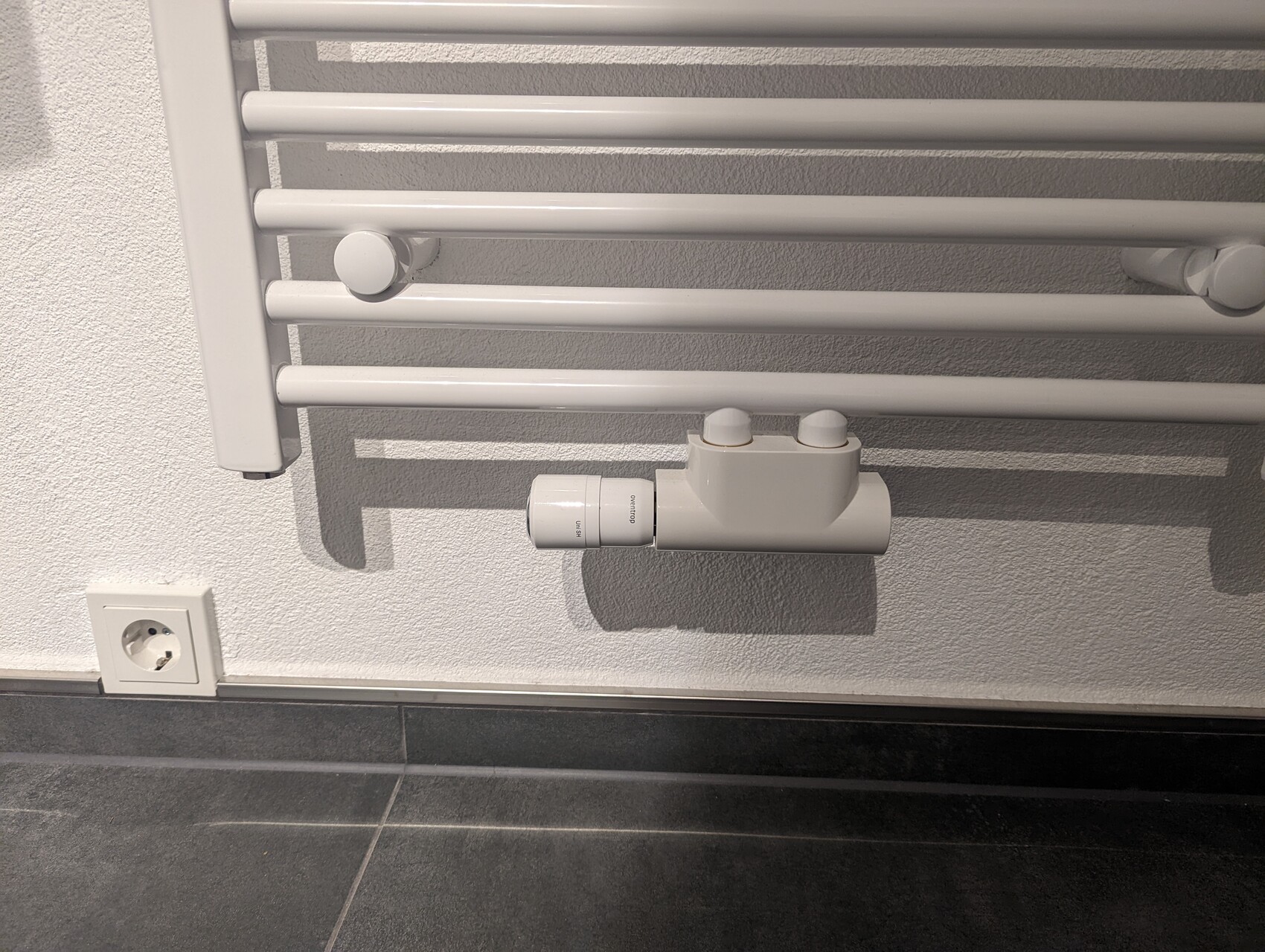 Wir haben u.a. einen Handtuchheizkörper (Handtuchheizkörper) mit Mittelanschluss der ebenfalls über die Fußbodenheizung läuft. Dass das suboptimal ist, weiß ich mittlerweile.