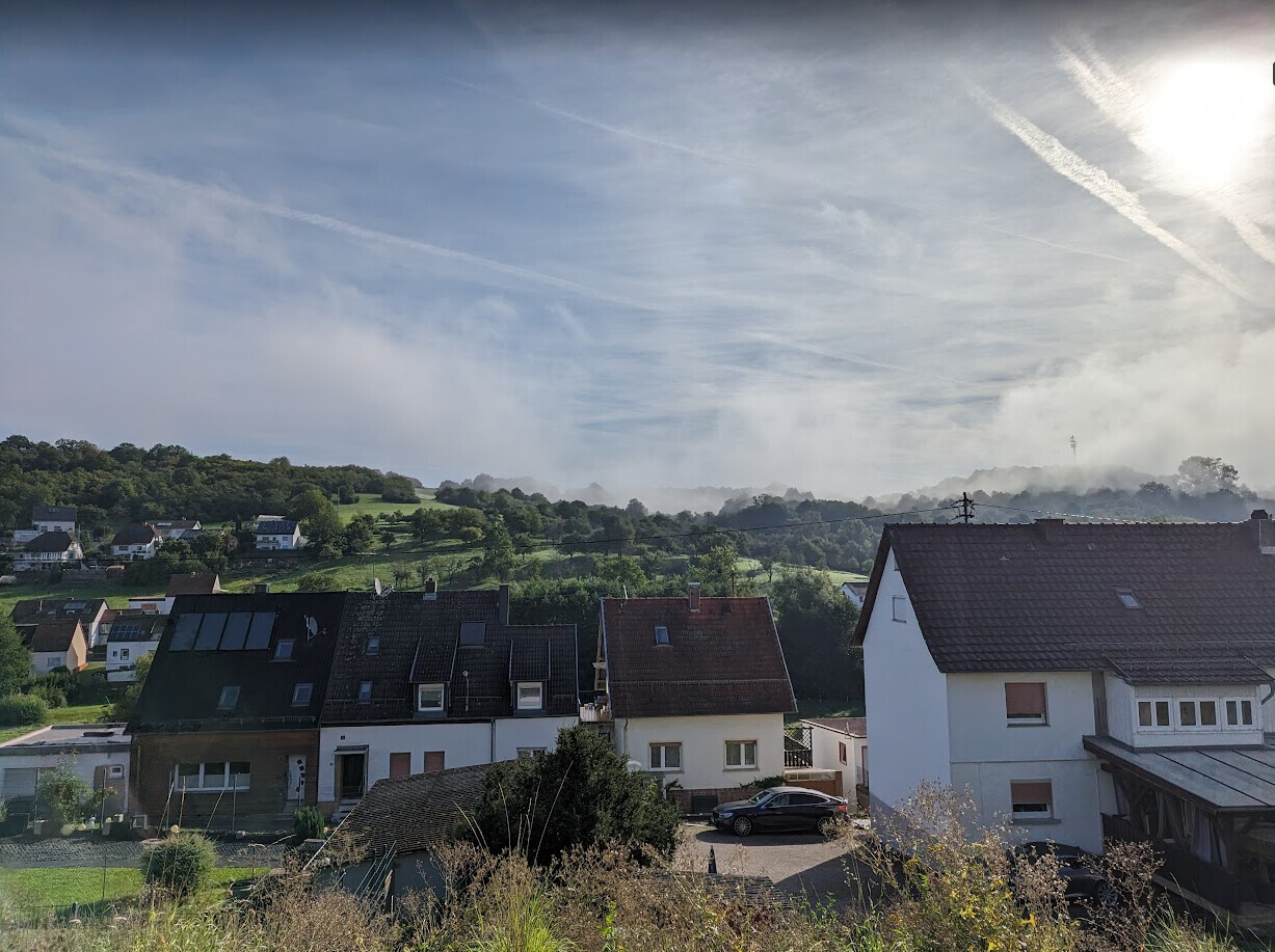 Nun da wir eingezogen sind können wir auch die Umgebung zu allen Tages- und Nachtzeiten bewundern. Dieses Foto ist am zweiten Morgen am Frühstückstisch entstanden. Die Sonne war am Aufgehen, es war neblig, und es sieht traumhaft schön aus wenn sich der Nebel über der Landschaft langsam hebt, aber noch über den Wäldern hängt.