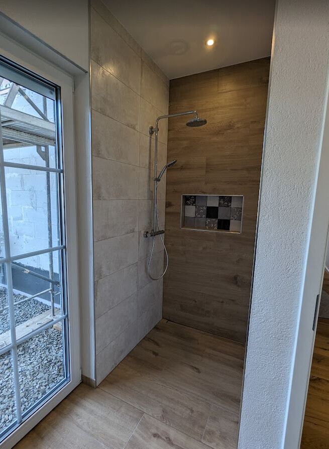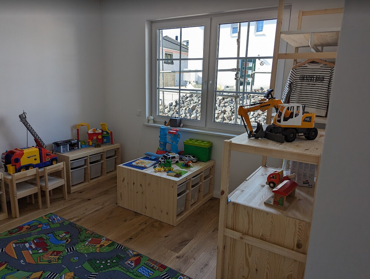 Es fehlt natürlich noch massenhaft Dekoration, und hier und da fehlt noch eine Blende / müssen Schubladen und Türen und Lampen eingestellt werden - der übliche Wahnsinn halt. Kinderzimmer 2 und Gamesroom liegen noch im kompletten Chaos. Da reiche ich noch Fotos nach. Ich muss eh noch mal Bilder machen wenn das Gerüst weg ist. Ich glaube die Sprossenfenster wirken ganz anders dann. In Natur und auf Fotos sieht es aktuell zusammen mit den Gerüststangen doch eher seltsam aus.