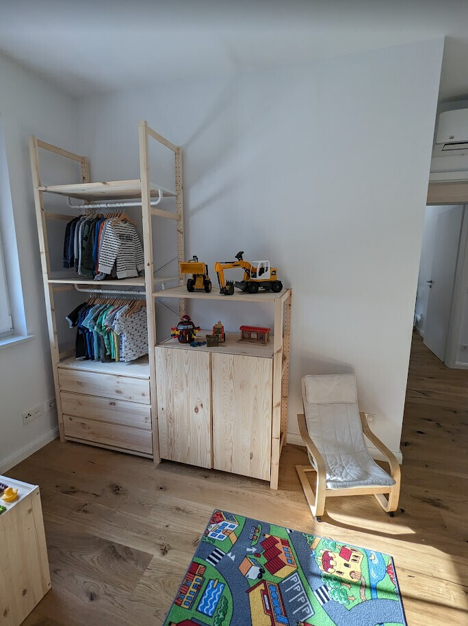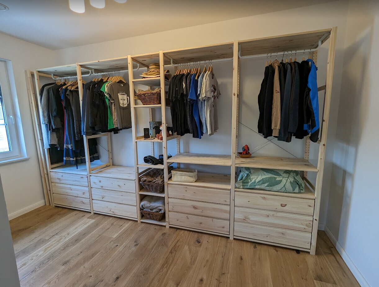 Wir haben ja lange überlegt was wir als Kleiderschrank nehmen. Weil's in der Masse die wir brauchten recht günstig war haben wir am Ende Ikea genommen. Ich bin echt überrascht und sehr angetan davon, wie gut der sich als Ankleide-Schrank macht.