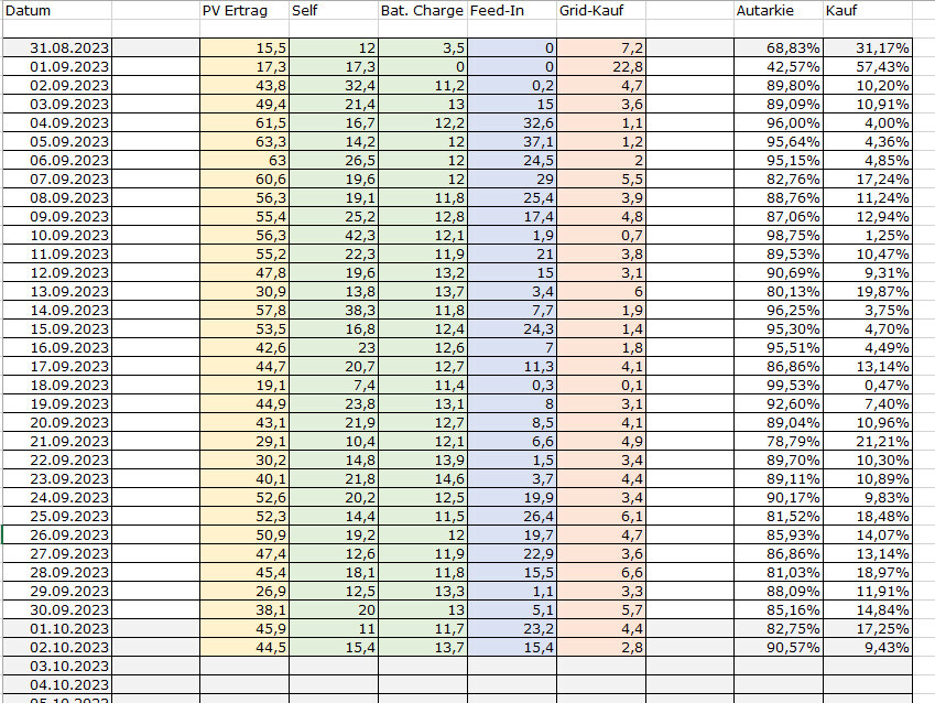 Ich habe gerade mal unsere Photovoltaik-Werte für September in die Excel getickert.