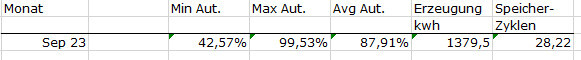 Wir hatten im September eine durchschnittliche Autarkie von 87,9% und über 28 Speicherzyklen.