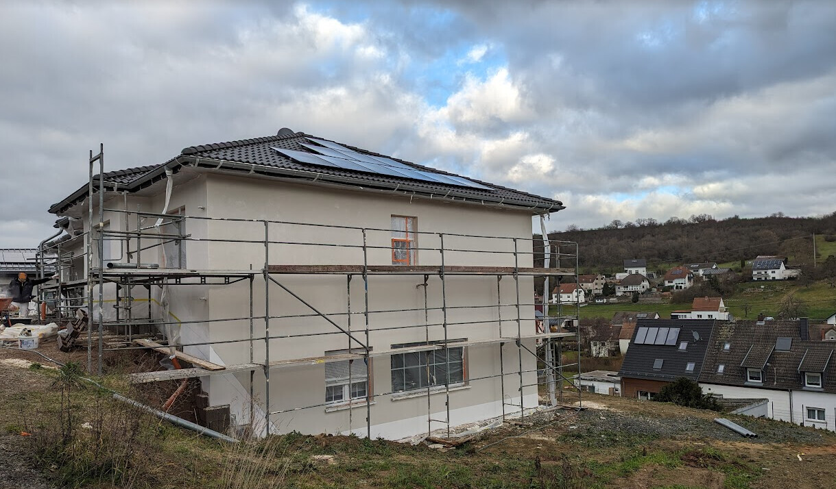 Ich hab' auch mal ein kleines Update. Seit gestern ist der Oberputz drauf.