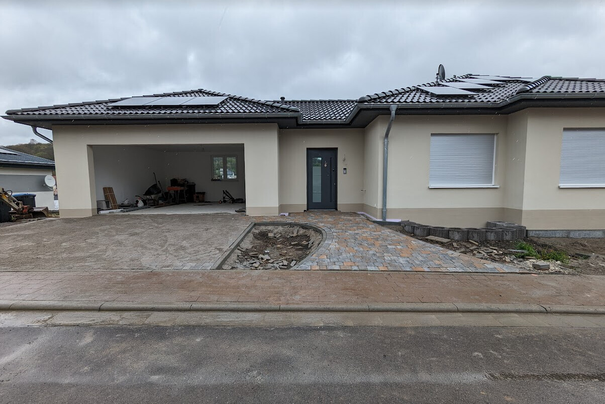 In Kürze soll es noch mit den Außenarbeiten losgehen. Zuwegung, ein kleines Beet, bisschen auffüllen vorm Haus. Bilder folgen wenn fertig.