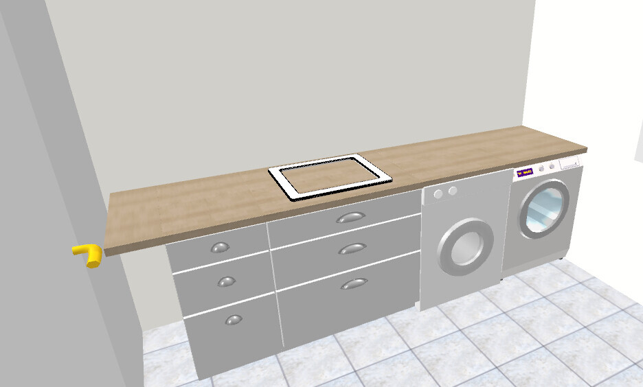 Und überlege, auf der Seite gegenüber der Zeile eine "Boaxel"-Kombination von Ikea anzubauen, zum Sortieren der Schmutzwäsche und zum Aufhängen von Wäsche die nicht in den Trockner kommt. Wäre dann aufgeräumter, denke ich?