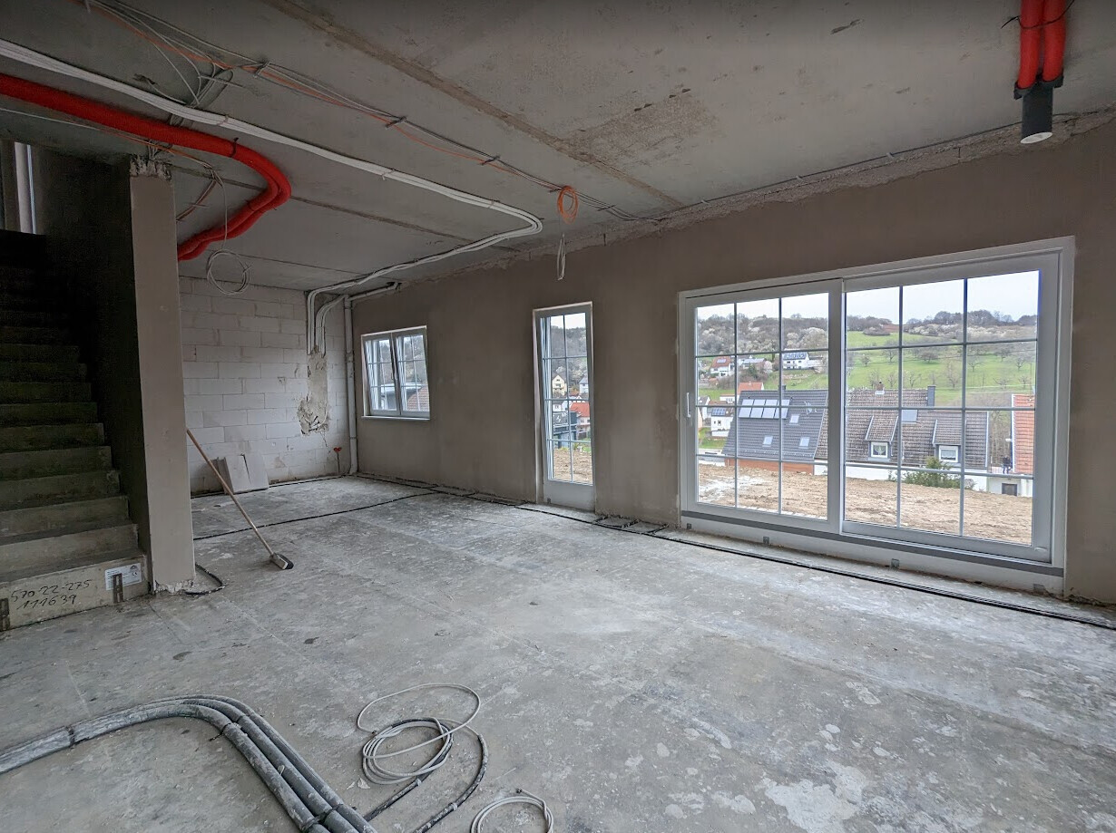 Herzlichen Glückwunsch, liebe @kati1337 !Ganz lieben Dank ♥ Seit gestern ist der Verputzer bei uns durch. Die Bäder und Garage haben einen anderen Putz bekommen. Im Wohnzimmer ist eine Wand offen verblieben, da kommt noch eine Leichtbauwand davor. Sonst wäre da mitten im Wohnzimmer im Eck so eine Winkel gekommen weil da das Wasserrohr runterkommt. Und als mir das bewusst wurde war ich sehr unglücklich. Zum Glück konnte es unser GU noch mal retten. Wir kriegen da jetzt eine gerade Wand, verlieren allerdings dann etwas wohnfläche im Wohnzimmer. Ist mir aber bedeutend lieber als so einen doofen Winkel im Eck, ich finde die Dinger extrem hässlich. Bin da auch traumatisiert aus dem ersten Haus. 😀