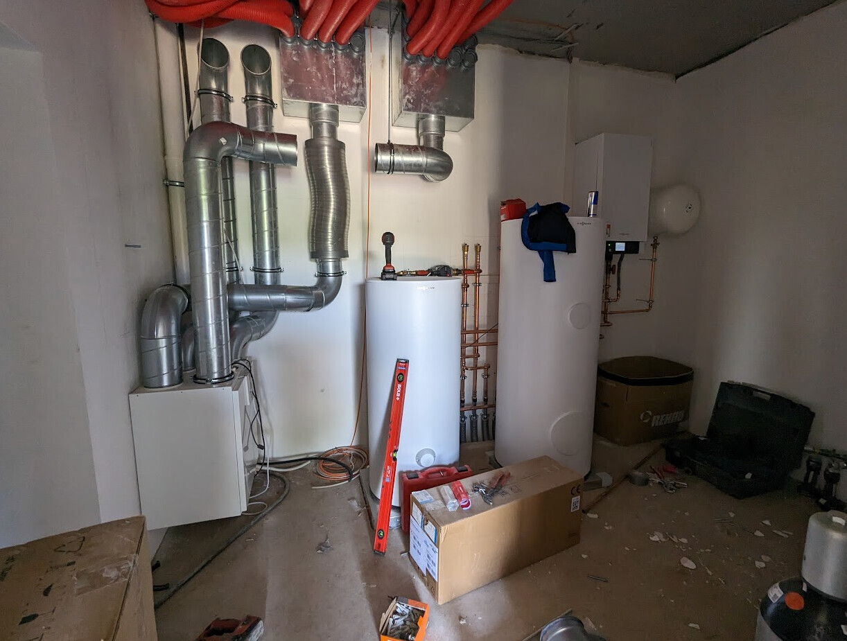 Neben der Photovoltaik war auch das Sanitär-Team fleißig. Klima- und Lüftungsanlage sind in Arbeit.