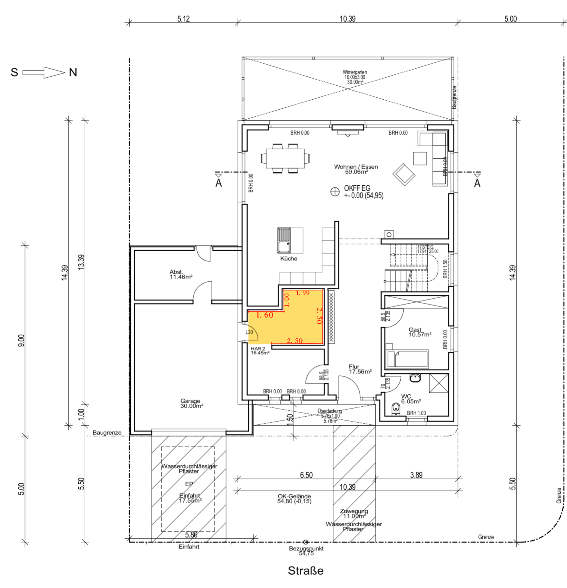 Die Verbraucher kommen direkt auf kurzem Wege von der Außenwand ins Haus. Das ist wirklich das vernünftigste. Also an die Garagen- oder Flurwand. Ich würde Dir zur Flurwand raten und die Heizung dann mit einer Garderobennische (60 tief) abschotten.Ja stimmt. Hab da irgendwie nur halb weiter gedacht 😀
