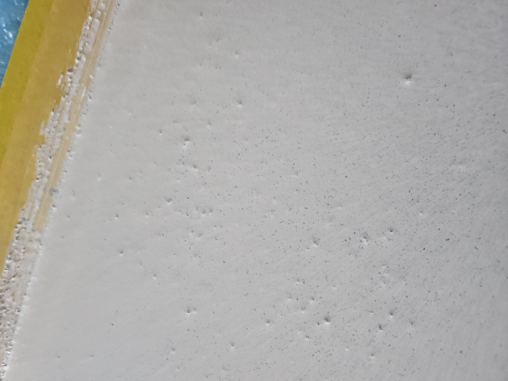 Die Fremdkörpereinschlüsse sind dadurch bedingt, dass vor dem Einbau des Flüssigmaterials der Unterboden nicht geschliffen und abgesaugt wurde.