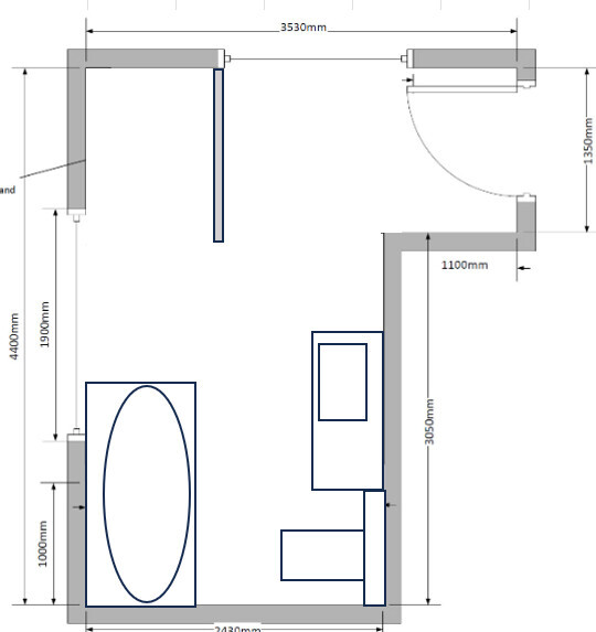 Wenn du einen Waschtisch streichst, kannst du die Wanne mit der langen Seite an die linke Wand setzen oder die Dusche mit der Wanne tauschen.