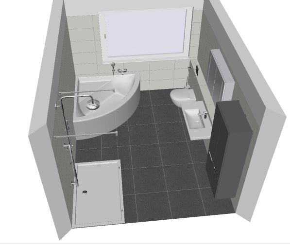 Mit Eckbadewanne, Dusche jedoch jetzt mit 1,4m Trennwand - offen in Richtung Badewanne.