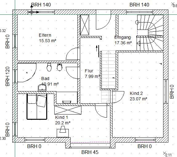 Aber fällt Dir nicht selbst auf, dass Du Deine Gästezimmer mit Deiner angedachten Möblierung kaum benutzen kannst (Zimmerbreite von < 270), Du überall viele Ecken einbaust, die Positionierung der meisten Schränke ein Nadelöhr fabrizieren, aber auch in Fluren , Deine Sofas gerade mal größere Sessel darstellen. Woanders hast Du wiederum Platz zum Tanzen, wo er aber gar nicht gebraucht wird.