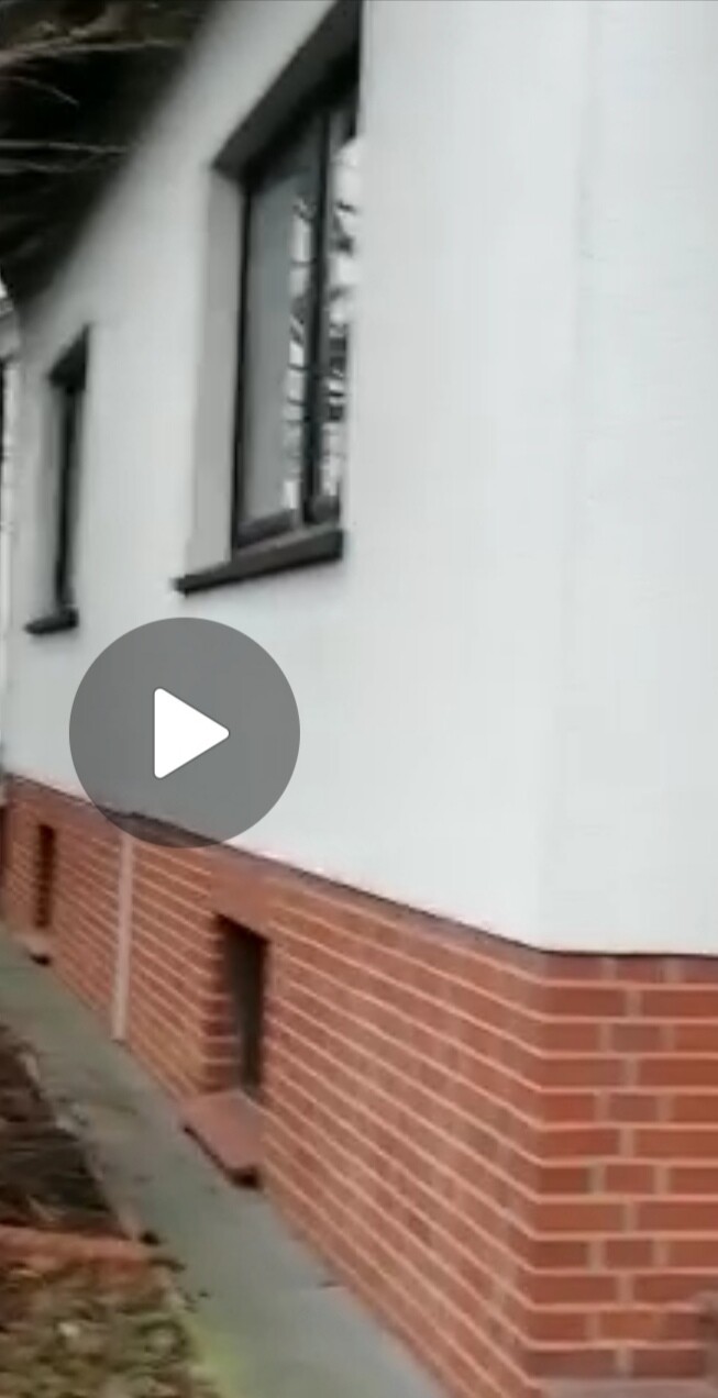 Das Dach sieht neuwertig aus, was aber nicht heißt, das es gedämmt worden ist oder ohne weiteres gedämmt werden kann. Ein WDVS (Wärmedämmverbundsystem) ist offensichtlich nicht montiert worden; es gibt keinen deutlichen Überstand des Fassadenputzes zun gemauerten Sockel. Auch sind die Fensterlaibungen dafür nicht tief genug. Zur Überprüfung reicht auch die Klopfprobe : klingt´s hohl, ist ein WDVS. Die Fenster dürften eine recht alte Isolierverglasung mit (heute) bescheidenem Dämmwert haben und aus den späten 80er-/frühen 90er Jahren stammen.
