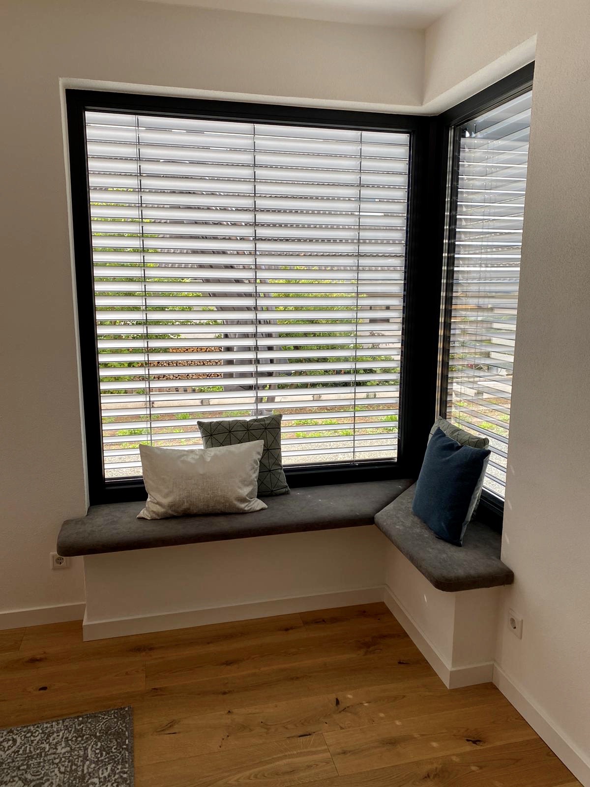 Ich hab hier das Gefühl/es sieht so aus, aus wenn a) die Tiefe zum Fletzen nicht gegeben ist und b) man eh nur, wenn überhaupt bequem, sitzen kann, wenn man mit dem Rücken am Fenster pappt. Die Fensterlaibung gibt anscheinend auch nichts her?!