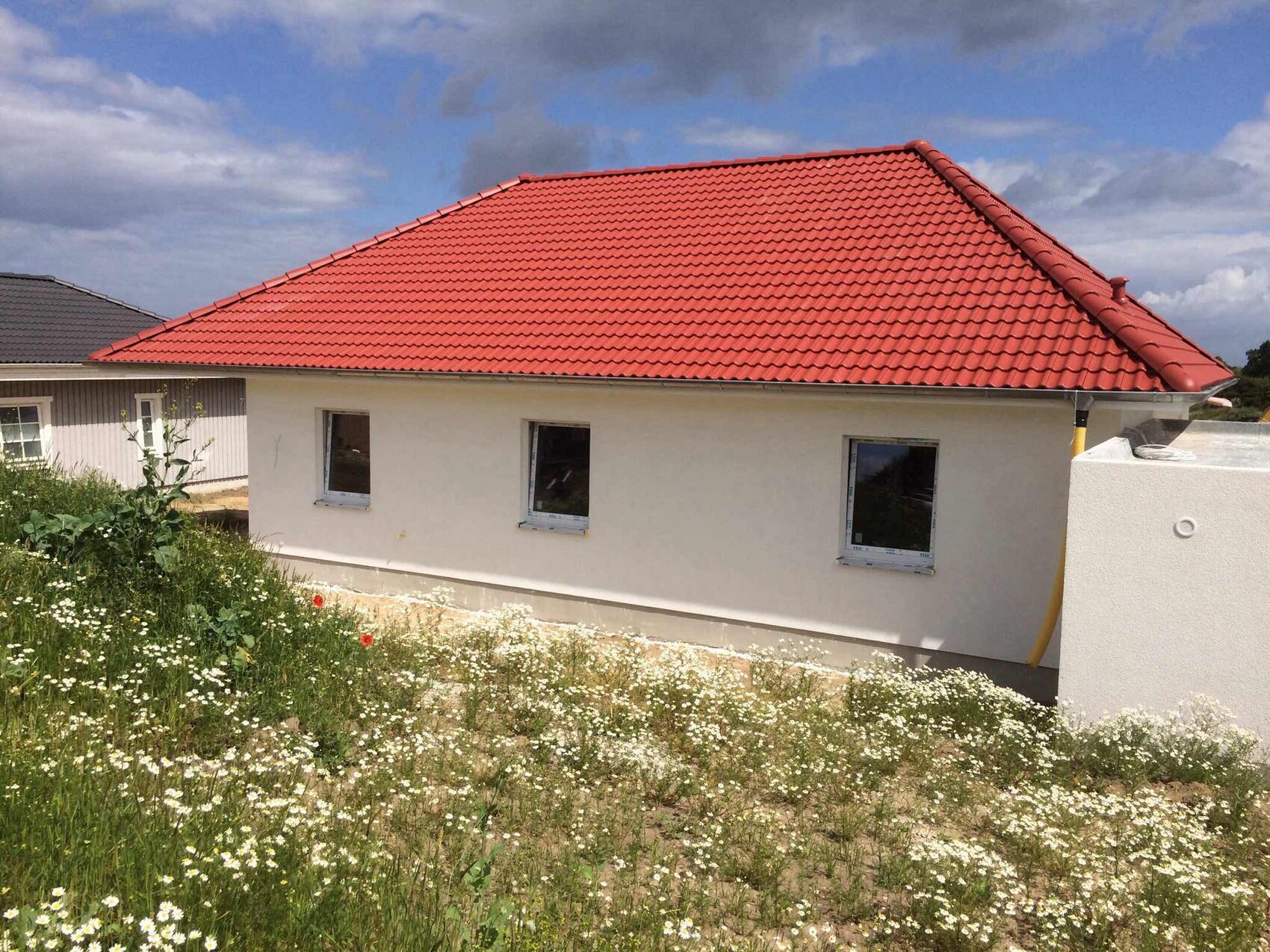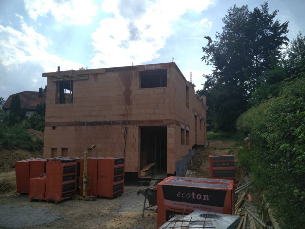 Bei uns ist nun Ruhe. Putztruppe ist auch außen durch. Estrich kommt morgen, danach gehts weiter mit Fliesen etc.