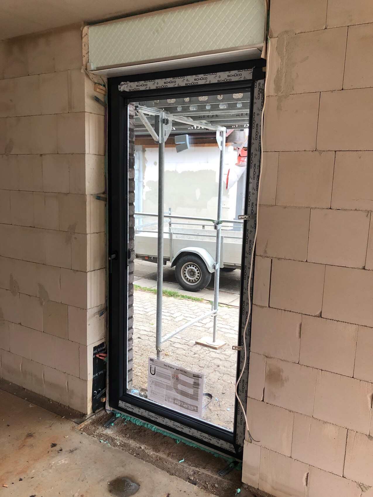 Da stimmt aber noch was nicht, was für ein Bodenaufbau wird im EG noch erstellt? Wenn ich mir das Fenster anschaue maximal 6-7cm, dann aber die Treppe die ist doch schon in der Antrittsstufe auf normal Höhe.